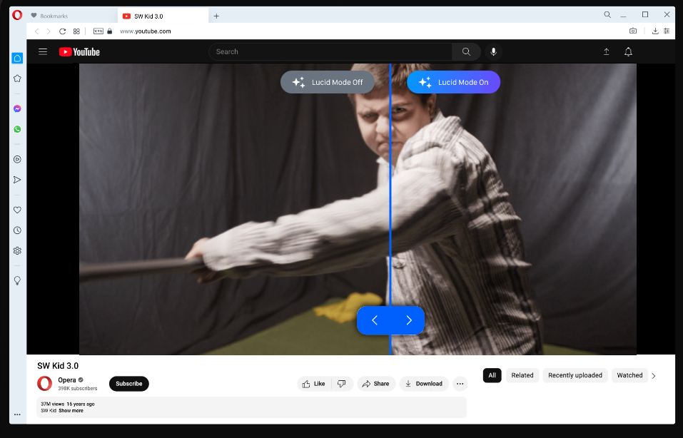 「Opera」が動画の品質向上機能「Lucid Mode」を強化 ~適用前と適用後を比較可能に