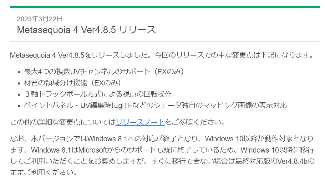 3DCGモデリングソフト「Metasequoia 4」がWindows 8.1への対応を終了 ~最新版が公開