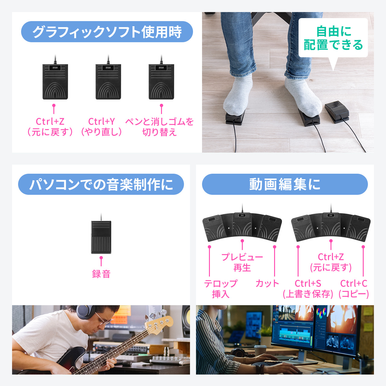 足でパソコンを操作! 好きなショートカットを割り当て可能な3キーUSBフットペダル、サンワサプライより発売