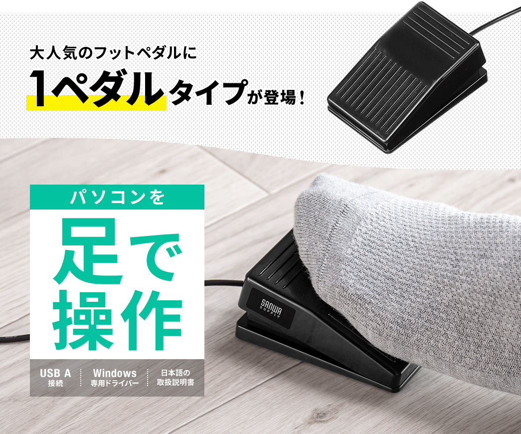 足でパソコンを操作! 好きなショートカットを割り当て可能な3キーUSBフットペダル、サンワサプライより発売
