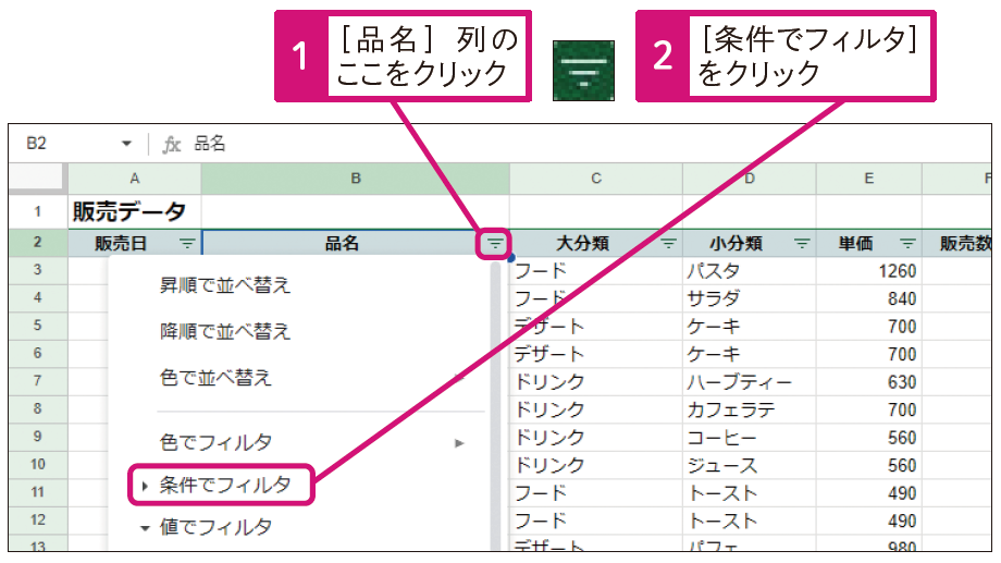 【Google スプレッドシート】表のデータを簡単に絞り込めるフィルタ機能を活用しよう(2/8)