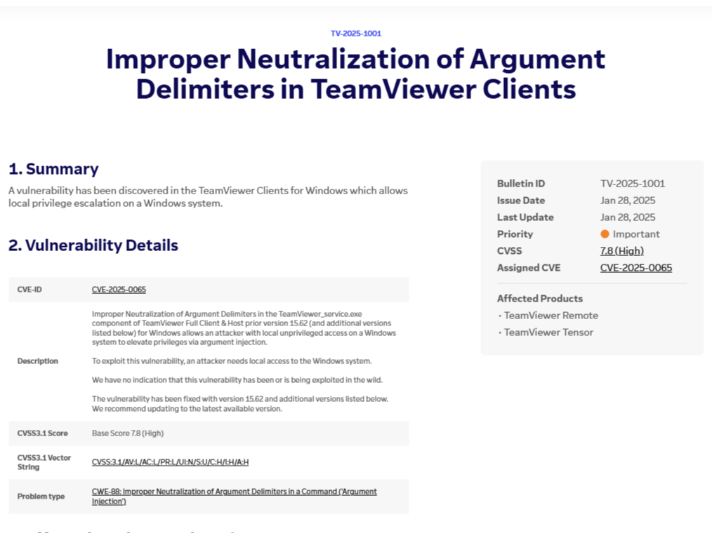 「TeamViewer」に深刻度「High」の脆弱性 ~「GitHub」に概念実証コード(PoC)が公開