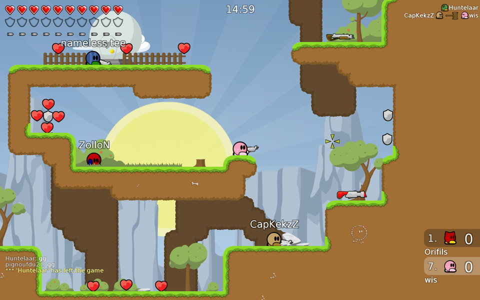 第524回:丸いキャラ同士のワイヤーアクション「Teeworlds」