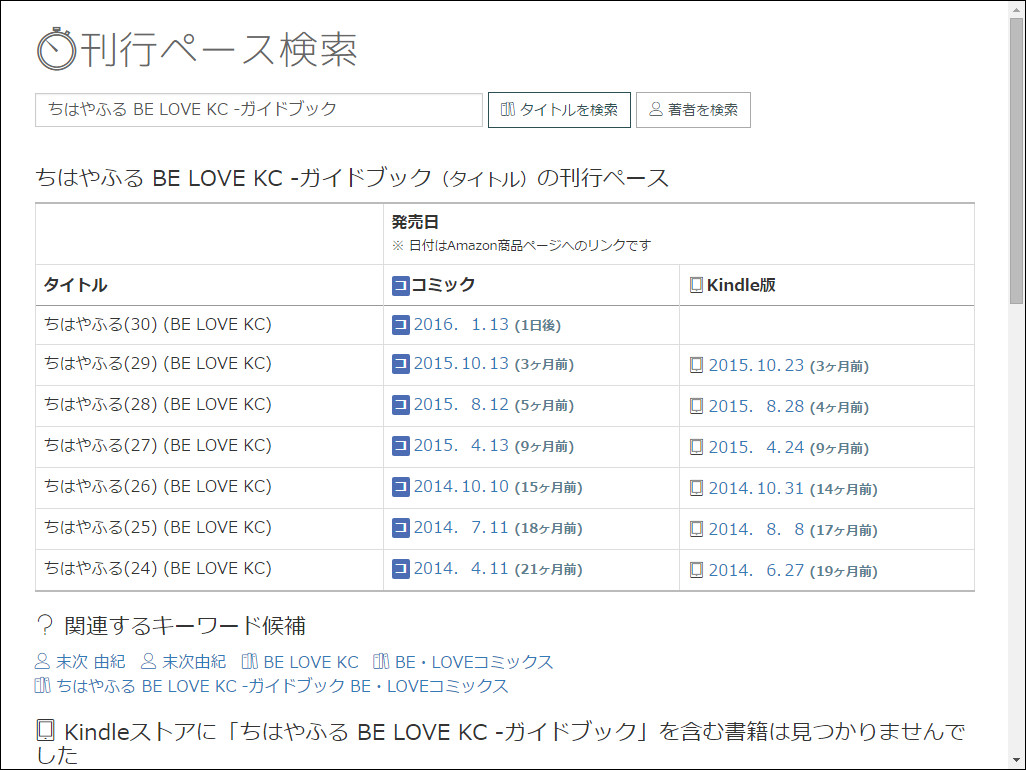 過去の発売日をもとにシリーズ新刊の発売時期を予測できる「刊行ペース検索」