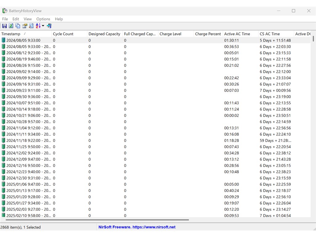 ノートPCのバッテリーの使用履歴を抽出・表示「BatteryHistoryView」