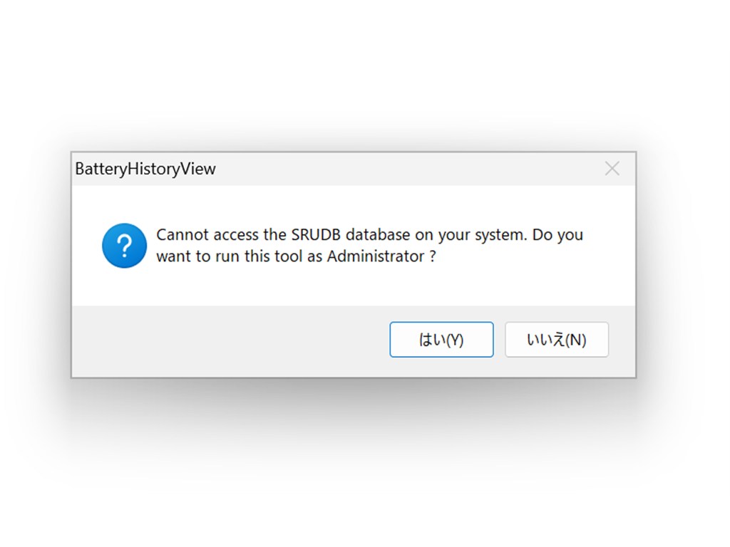 なお、「SRUDB.dat」ファイルがロックされている場合は、管理者権限でアプリを開きなおす必要がある。とはいえ、確認ダイアログで[はい]をクリックするだけだ。ただし、リモートPCの場合はファイルがロックされていると読み取ることはできない。